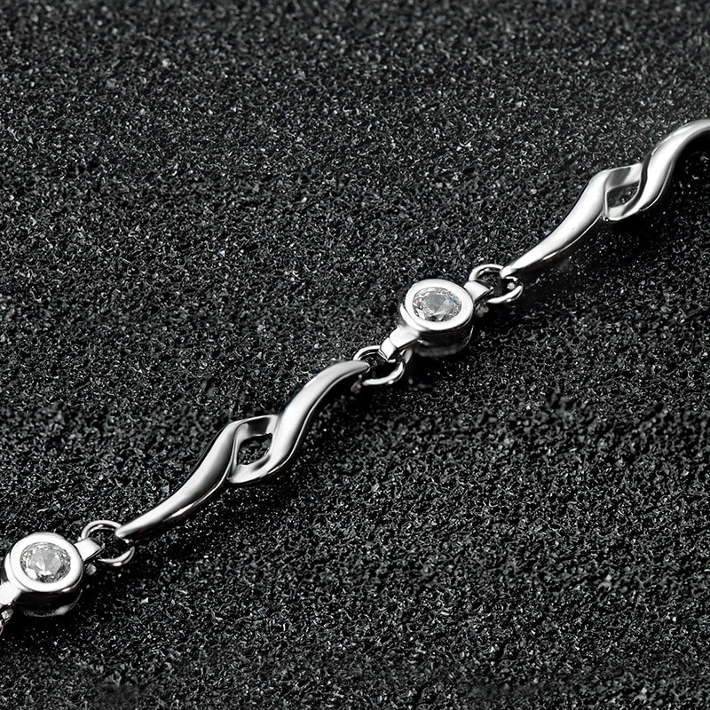 Day-to-night magic: Pair this silver bracelet with jeans and a tee for “casual but make it fashion” vibes, or let it steal the show at date night with a slip dress. The CZ stones add just enough sparkle without screaming “I tried too hard”. Pro tip: Stack it with a minimal watch for that “too cool to care” arm party.