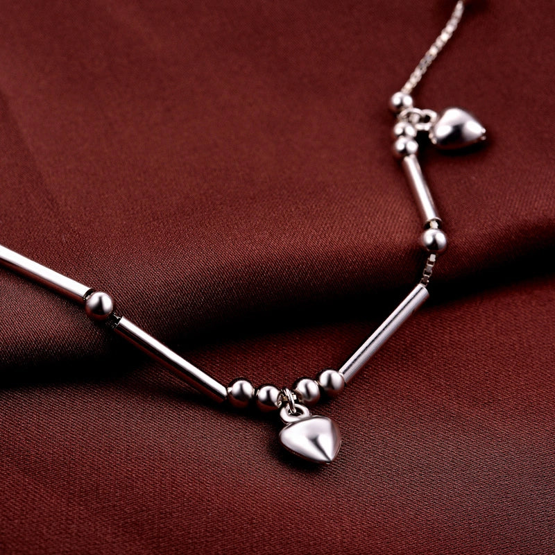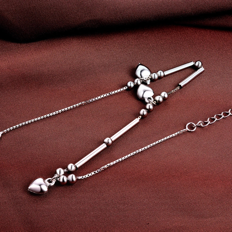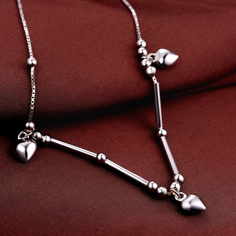 Letโs cut to the chaseโsilver anklets arenโt just a trend, theyโre a lifestyle! Thisย sterling silverย stunner packs threeย heart charmsย spaced between shiny beads, making it the ultimate โlove yourselfโ accessory. Hereโs the lowdown on why this 24cm beauty (with a 3cm adjustable chain) is a must-have: