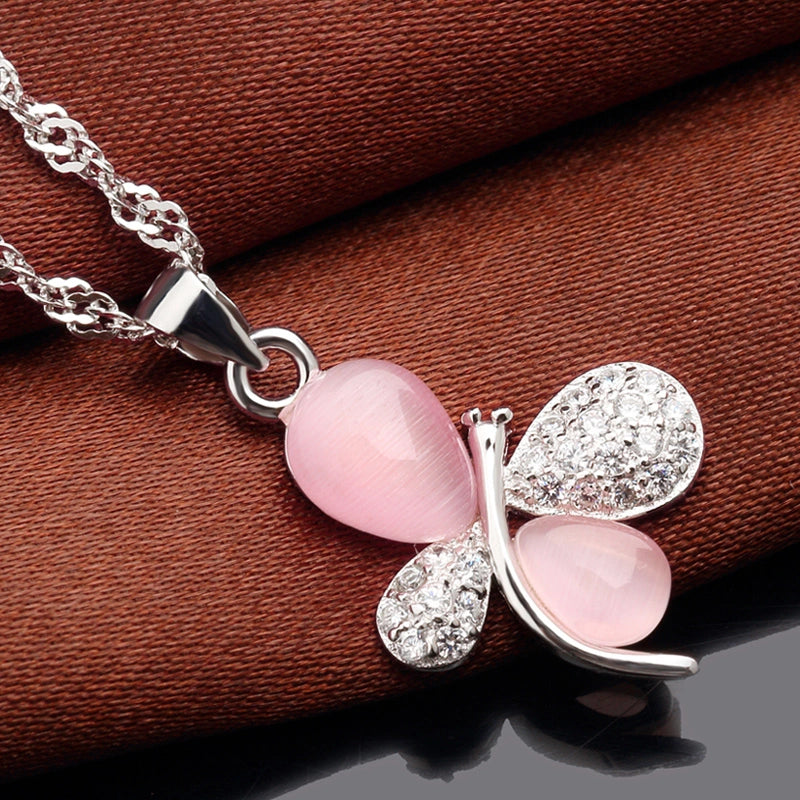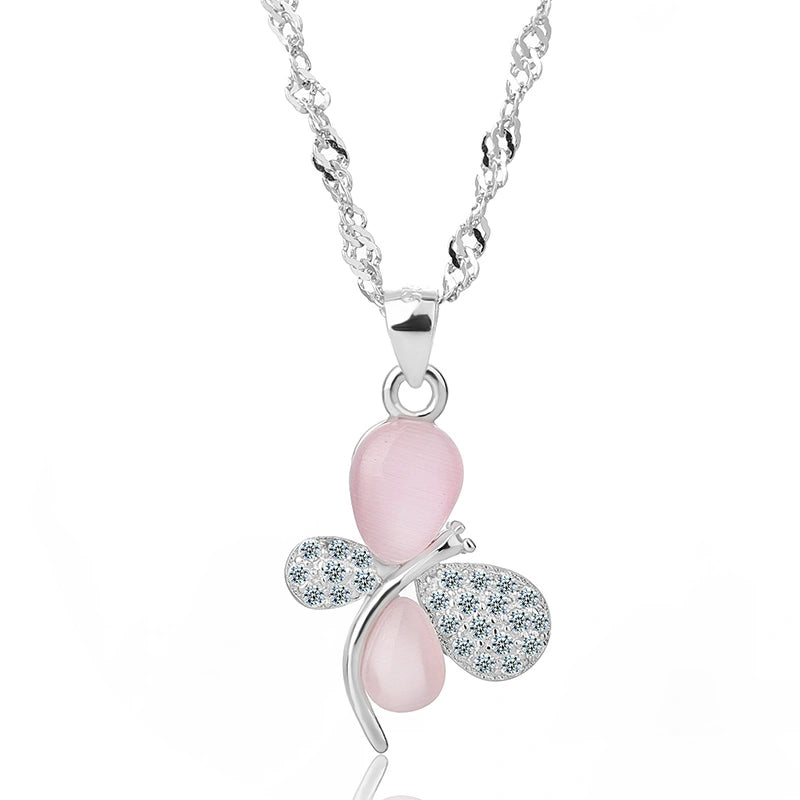 • Cubic zirconia halos frame two synthetic pink cat’s eye stones—7mm×5mm and 5mm×3mm—that glow like a TikTok filter in sunlight. The four-leaf clover design? It’s not just cute—it’s luck, love, hope, and faith all rolled into one.
