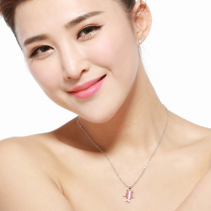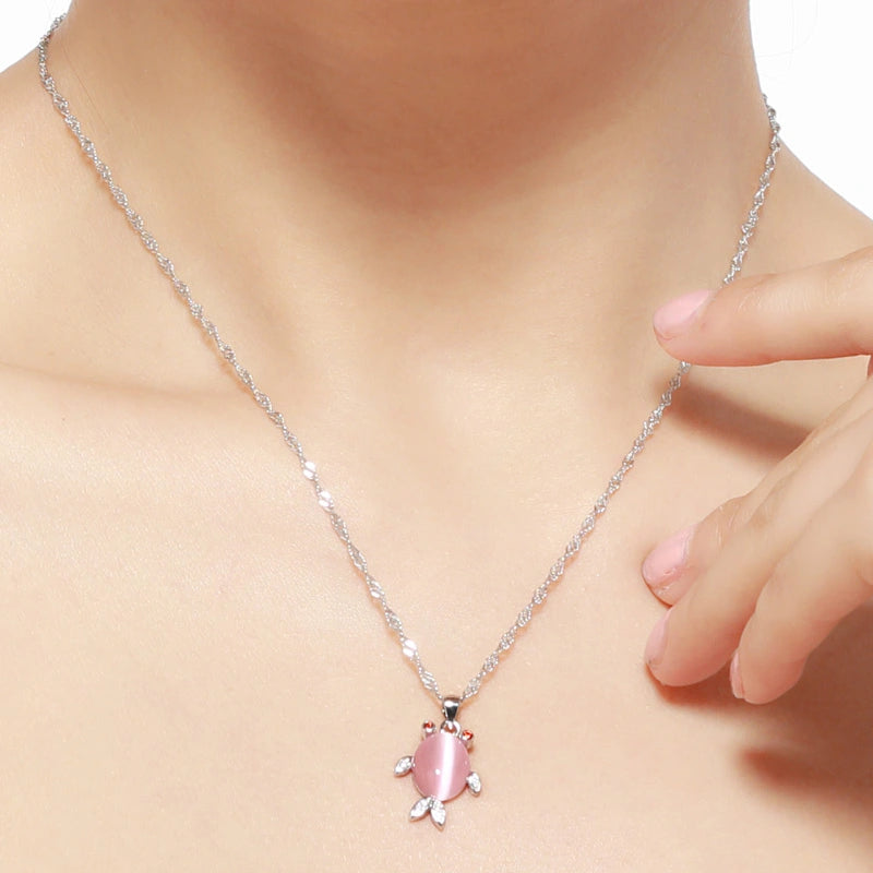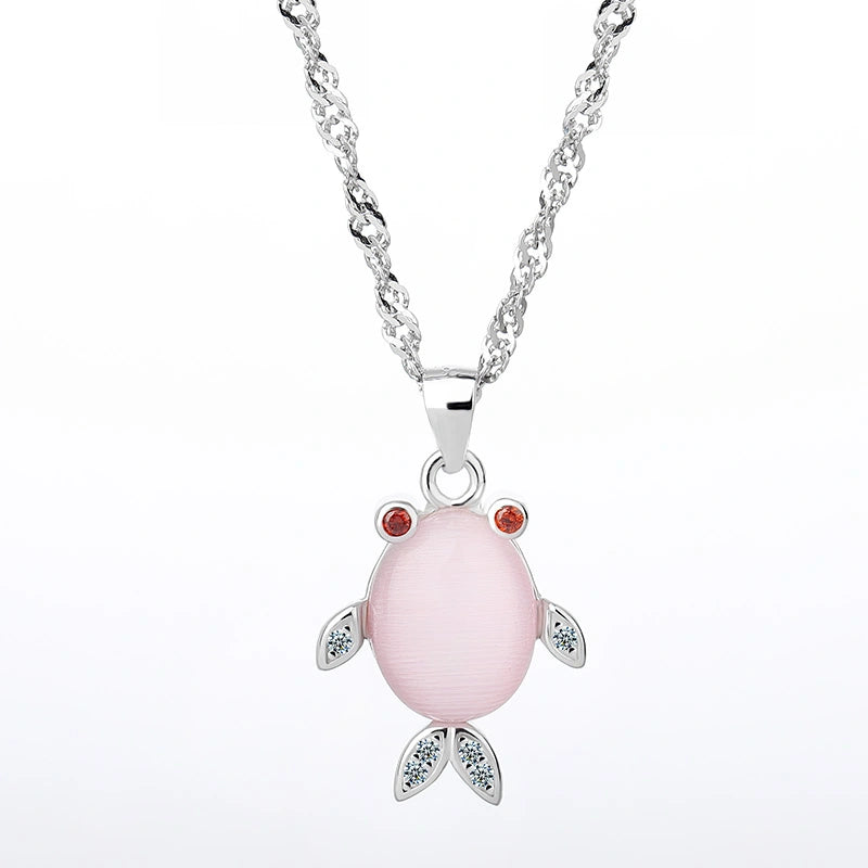 • Sterling silver (S925, babe!) base means no itchy necks or green skin—just pure “I woke up like this” confidence! This cubic zirconia-framed goldfish hugs a synthetic pink cat’s eye center that’s so dreamy, it’s basically mermaid core in pendant form.